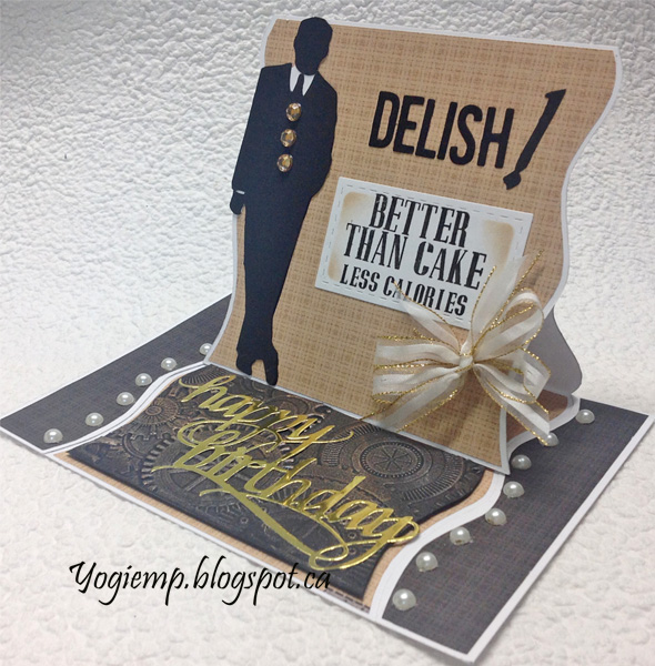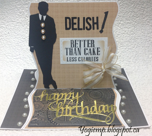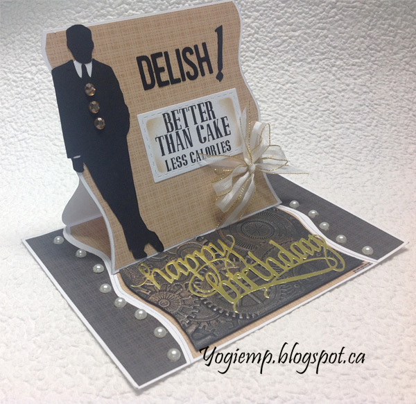 Created: June 26, 2018 I came across this structure and thought I'd give it a try. I like the little variety I get between this one and my normal easel card. I've used this guy image before and loved it then. Still love him now. He is just so sexy in his dark suit and white shirt, leaning back a bit with his feet slightly crossed and his hand nonchalantly in his pocket. I can imagine a nice set of cuff links. I'm waxing poetic here - SIGH! I'm using an a A Way With Words die "Happy Birthday" 2pce set and "Calligraphic Elements 1" 3pce set, from Elizabeth Craft Designs, also available on Quietfire Design HERE and HERE |