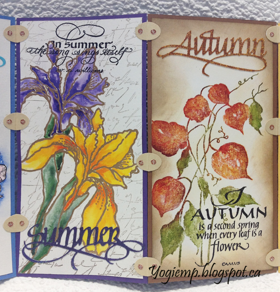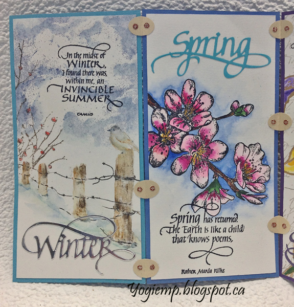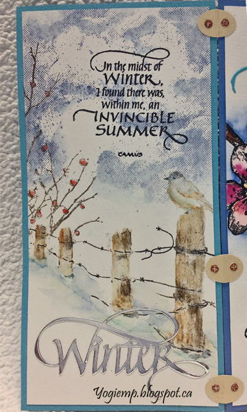 I'm continuing to play with my watercolors... all the stamped images were done on cold press watercolor paper and painted mainly with Winsor & Newton paints and or Distress pads. I'm using an A Way With Words dies "Four Seasons" 4pce set from Elizabeth Craft Designs, also available on Quietfire Design HERE