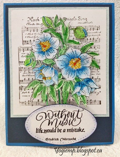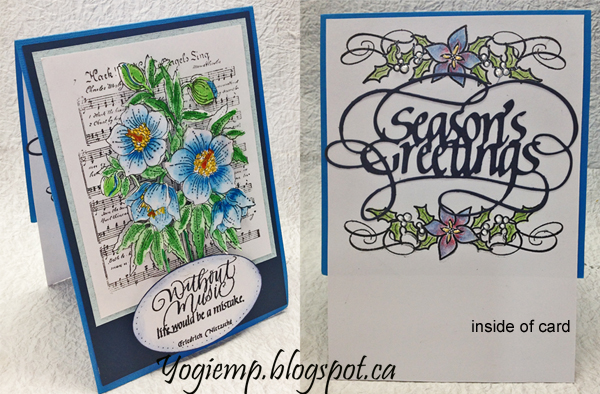 Created: October 27, 2018 Beside the Ton stamps I also got a bunch of Chocolate Baroque stamps which I'm loving. Do I ever say I'm not loving the new stamps I get... BIG GRIN I'm using an A Way With Words dies "Season's Greetings" from Elizabeth Craft Designs, also available on Quietfire Design HERE I'm using a rubber stamp quote from Quietfire Design ("Without Music..."); ("Poinsettia Banner and Sentiments" 4 pce set)