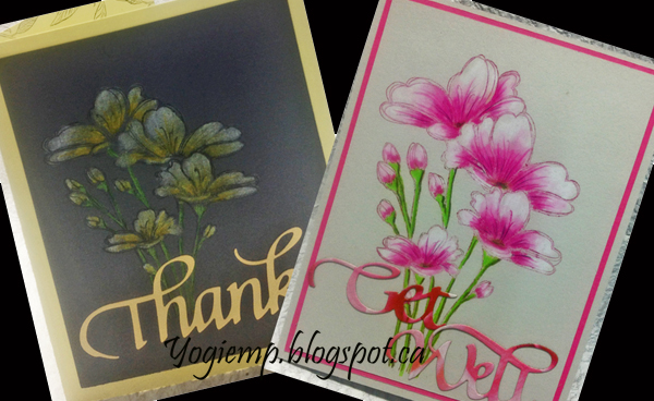 Created: February 4, 2019 After I was inspired making the blue card I thought I'd try them in some other colors... I like the pink one. The yellow one I did on a darker gray and doesn't pop as much. Will have to try it on a lighter gray... You can see the blue one HERE I'm using a die "Thanks", "Get Well" 3 pce set and Flourished Oval Frame" 2pce set from Elizabeth Craft Designs, also available on Quietfire Design HERE, HERE and HERE And I'm using rubber quotes from Suzanne available on Quietfire Design ("A Word Lovingly Written..."); ("You Never Know How Strong...")