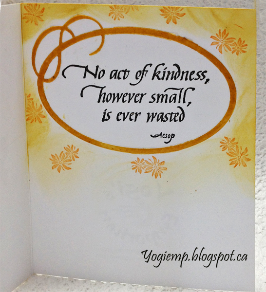 On the inside: stamped the quote using Versafine Black Onyx and clear embossed. Die cut the Flourished Oval Frame from white cardstock, inked with a yellow Distress pad and embossed with Emerald Creek Given Lafleur Boho Blends "Saffron" embossing powder, then with UTEE. Adhered to card Stamped the little flowers (Rubber Stamp Tapestry "Piney Hollow Christmas" 4pce set) using Distress Carved Pumpkin. Sponged around edges with Mustard Seed. |