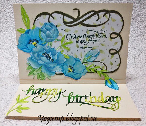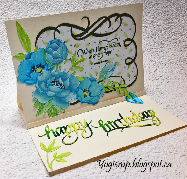 Created: May 16, 2019 This is the first time I've ever bought a card kit... but I broke down when I saw the beautiful stamp set it came with, plus the Alcohol Pearls, so the price was right... It also came with some beautiful cardstock, patterned paper pad, envelopes etc. I'm using several dies "Flourished Frame" 2pce set and "Happy Birthday" 2pce set from Elizabeth Craft Designs, also available on Quietfire Design HERE and HERE I'm using a clear stamp quote from Quietfire Design. ("Where Flowers Bloom Collection" 11pce set) also available on Elizabeth Craft Designs HERE