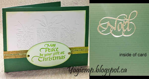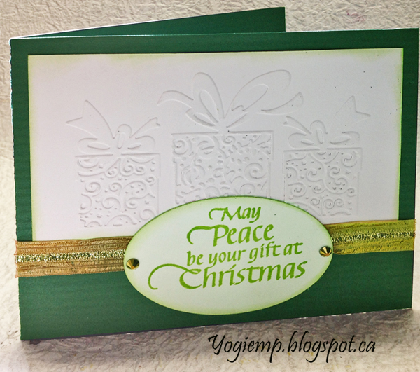 Created: September 15, 2019 A very simple card using another embossed image from my stash and another of the newest rubber Xmas stamps from Suzanne... I'm using a die set "Noel" from Elizabeth Craft Designs, also available on Quietfire Design HERE I'm also using a brand new Xmas rubber quote stamp from Quietfire Design ("May Peace Be Your Gift..." 2pce set)
