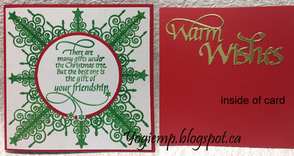 On the inside: Die cut the words from DoCraft gold Mirror cardstock and adhered to inside. |