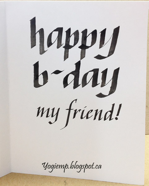On the inside: Wrote out the words with the 6.0 and 2.4 Parallel pen and Sumi ink. |