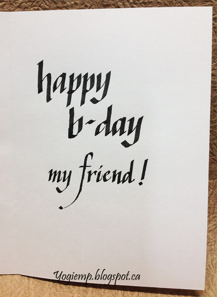 On the inside: Wrote out the words with the 6.0 and 2.4 Parallel pen and Sumi ink. |