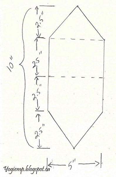 Cut cardstock 10" x 5". Score at 2.5" and 5". Find the mid point on the top section and cut to either side to the 1st fold point creating your top diamond half. Pencil in a little dot on either side at the 7.5" point and at the mid point on the bottom edge. Cut the half diamond. Voila you have your card base. |