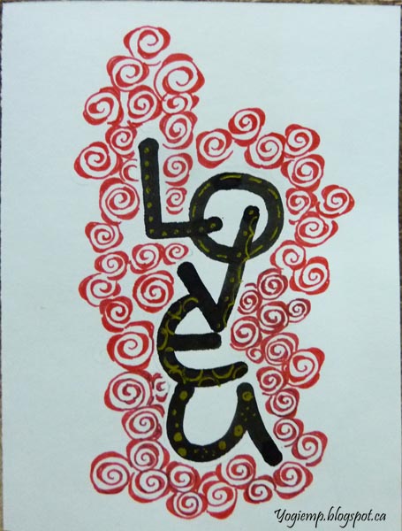 Doodled with a gold gel pen. Then drew swirls with a red Zig Writer
