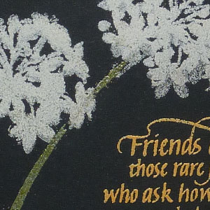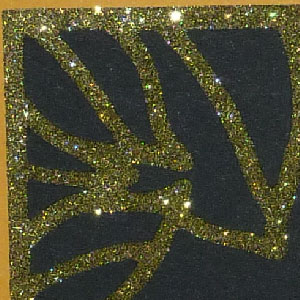 Now if you are using the negative portion from the previous cut out, (see that card HERE) place a piece of double sided tape, make sure it's wide enough to give you a border over the pieces on your mat. Press down only on the cardstock pieces and carefully lift up the tape, helping it along to remove the pieces stuck to the mat. You preferably want a not too sticky mat. NOTE: Try not to press the tape to the mat, it becomes difficult to remove. When its removed, sprinkle the Ritz Micro Fine Glitter Peridot all over and burnish. Remove all excess glitter and wipe down your piece with a lightly, misted with water, piece of paper towel. Trim down to the finished size for your card. Lift up a small section of the release paper on the left hand side that will be put near the fold of your card. Holding the adhesive taught, place it on your card, press down so the adhesive is sticking securely, then slowly start to remove the rest of the release paper, pressing down as you do. If you don't have an electronic cutting machine with the appropriate software, you can draw your design on one side of the release paper from a sheet of Sookwang tape, cut around your shapes, place cut out on your card and sprinkle and burnish with your glitter. I inked up only the flower portion of the queen Anne's Lace with Perfect medium and embossed with Puff's White embossing powder. It gave a textured 3D effect because the embossing powder puffs up when heated which is perfect for this type of flower. I repeated the stamping and embossing on each flower to give an almost ghost image of some petals and a fuller flower area. I then cleaned my stamp and inked up only the stem, again with the Perfect Medium, sprinkled Magnolia embossing powder and cleaned the powder away from my flower, then heat set. Stamped the quote (Quietfire Design) with the Perfect Medium and embossed with Top Boss Mac 'n Cheese" embossing powder. Adhered the black layer onto my yellow main card. Sorry, but it seems I can't include Zip, SVG or Scut files on my website, so, please click LEAF BORDER for an image you can save to your computer and alter as necessary. |