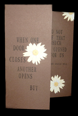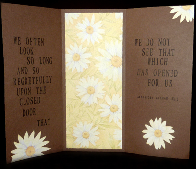 The quote inside was stamped using Just Rite Times Roman alphabet stamp set and the black stamp pad. I used a daisy patterned scrapbook paper and cut some of the daisies out to place between the text. |