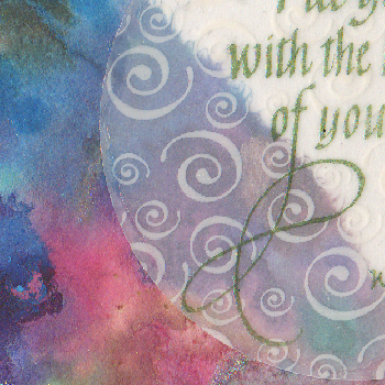I rubber stamped the quote "Fill your Paper" Quietfire Design using Brilliance "Pearlescent Olive" and clear embossing it on a swirled patterned vellum. Cut it out with my EK Success "Orbis" circle cutter.