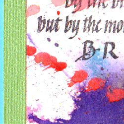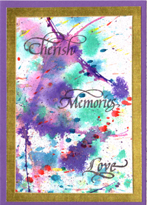 | This one was mounted to a ribbed gold metallic cardstock then onto a deep purple. Rubber stamped the words (Quietfire Design "Life Journey Words") with black Versafine stamp pad. |