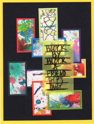 ID : Spatter Backgrounds (various papers)"Block by Block" 5"w x 6.5"h