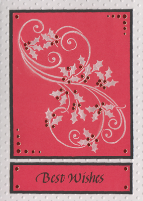 ID: LJ731 1 Rect Red & W - Best Wishes I used the Sizzix Dots folder on a white card. Added various sized red gem stickers in the corners and on the berries. |