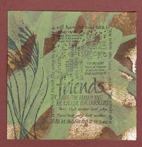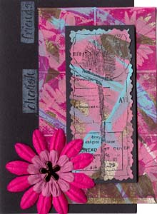 I took a mini class at Paper Pastimes (my local rubber stamp store) from Jacqueline - a Magenta representative. Fabulous. It was a fast paced class where we made several backgrounds and then finished 6 cards. |