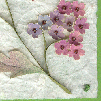 Created By Hand. I love the look of these punched out flowers. I've seen it in a couple books, where you use various punches (not necessarily floral) and then create flowers from them. Done a couple of them and really like them, which is why when I saw this type in "The New Concepts in Paper Quilling" by Marie Browning, I had to make one, and ended up making a few, with more punched out flowers ready to make a few more. So I colored some gold parchment paper with Pan Pastels in Ultramarine Blue & Magenta, getting nice shades, and then punched out literally hundreds of them while watching TV. I then used some fun foam and a large stylus to give them the 3D look and feel. Placed them on my heavily textured off white mulberry type paper, until I was pleased with the layout. Used some 1/8" quilling strips for the stems and adhered everything down. Added a punched out leaf. |