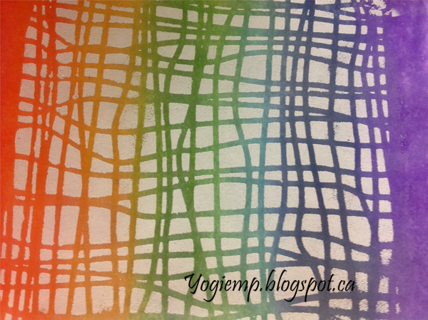 card. Layered a piece of deep purple on top. I created the background on white 110# cardstock. Inking the rainbow colors using Distress pads both direct to paper and with a round sponge blender. Misted liberally with water and swish my finger through the wetness to move color and give faux brush strokes... Dried thoroughly. Powdered the surface with an antic static pad. Placed my stencil (Prima Marketing #569440) on top, inked with Versamark and embossed with white embossing powder. I couldn't find my star dies or punches... so electronic cut a bunch of sizes from the decorated cardstock. Adhered to front pleasingly Die cut the "Smiles" from the same piece of cardstock. Mounted on to a die cut piece of white fun foam then onto my card front. Stamped the quote using Distress Picket Fence and embossed with white embossing powder. |