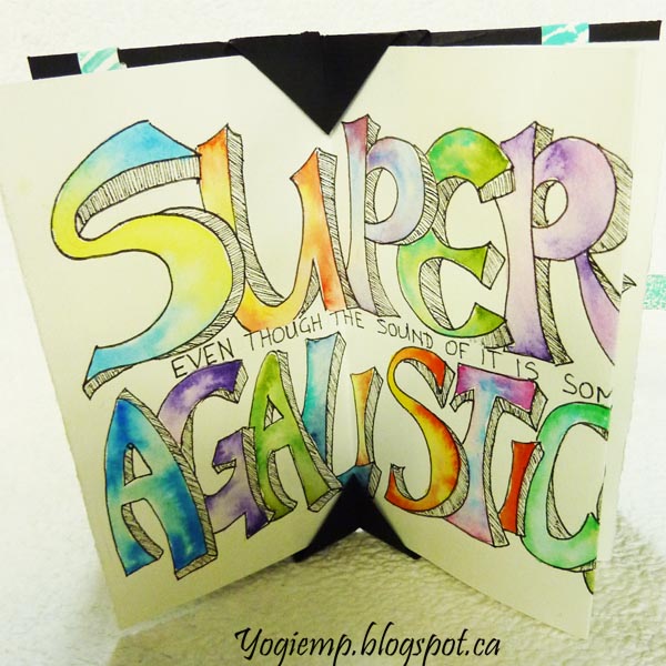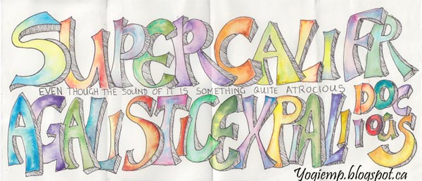 Wrote my text on Arches Textwove paper using a Zig Writer. Used a Micron pen for the 3D effect. Painted with QoR watercolors and lots of water... Words: Supercalifragalistic even though the sound of it is something quite atrocious. |