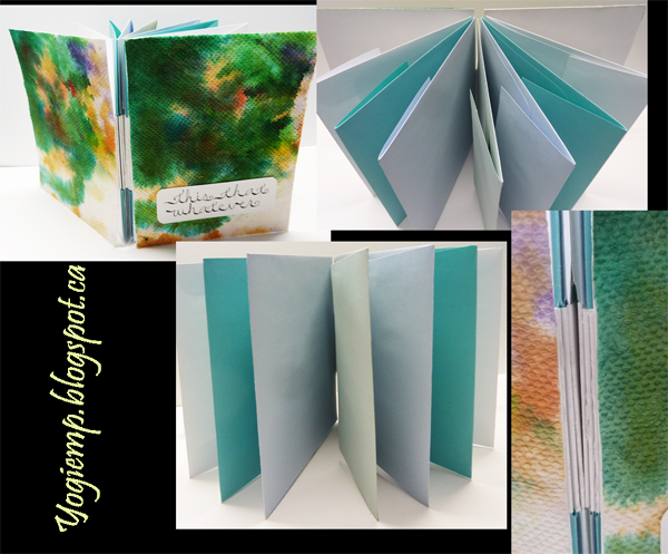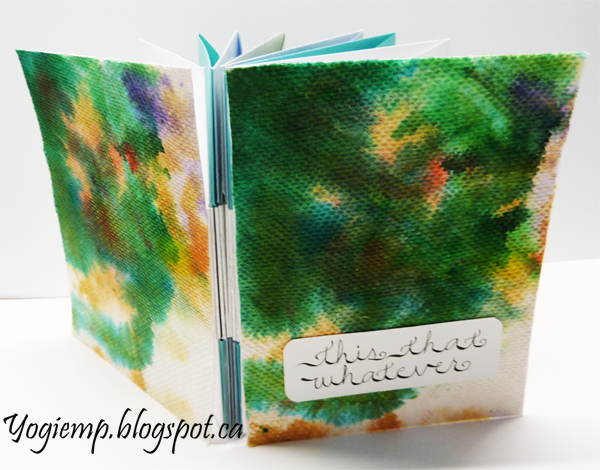 February 5, 2025 Our next challenge was to create an envelope booklet. So I raided an area in my art room I haven't been in in eons... and came across these invitation size envelopes which I will never use...so out they came... Cut a slit in the spine area and adhere a piece of folded white cardstock (it was textured stuff that cracked a bit...) attaching 2 envelopes together. continued till all were attached. Then adhered the covers which I covered with piece of inked/painted paper toweling I made EONS ago and landed in the same junk pile... Inked a piece of the cardstock for the title (This That Whatever) using a pointed nib and Sumi ink in shaded base - Spencerian lettering I recently learned .