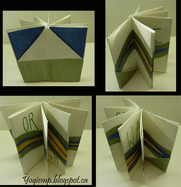 Created: September 19, 2021 Our challenge for our October 12th meeting is to try the next structure in the book - One Sheet Folds #18 Franklin Fold from Hedi Kyle's "Art Of The Fold" book. I used Arches Textwove (6.75" x 11". Determined where the artwork should fall (See instructions below), then painted with Artistro Metallic Brush pens and wrote out what popped into my head... "My Way Or The Highway" using an extra fine tipped Artistro pen. When the booklet was completely folded I decided the front and back was too plain so painted them while in book structure.