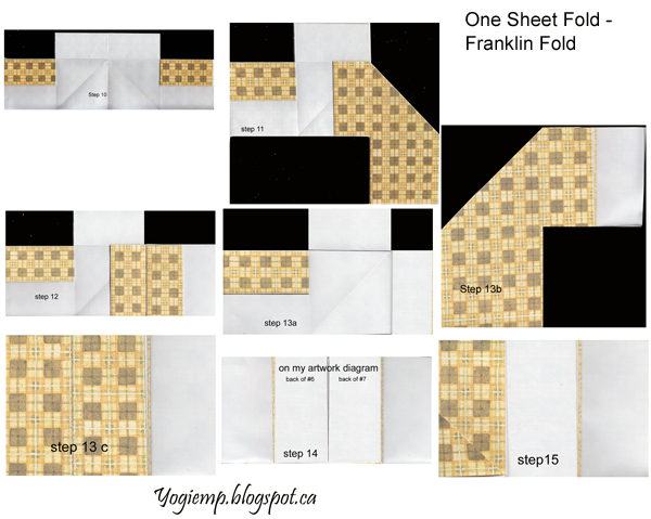 Please note there are 2 accordions meeting at page 6 and 7. If you want them left open then add them to the diagram. I glued them together to create one full accordion. Keeps things neater. Take Note: some of the pages are upside down. Your artwork will be facing your desktop when you fold the structure. Refold and continue to step #10 |