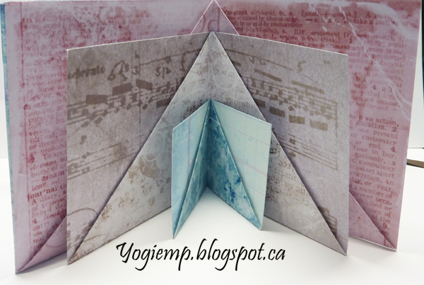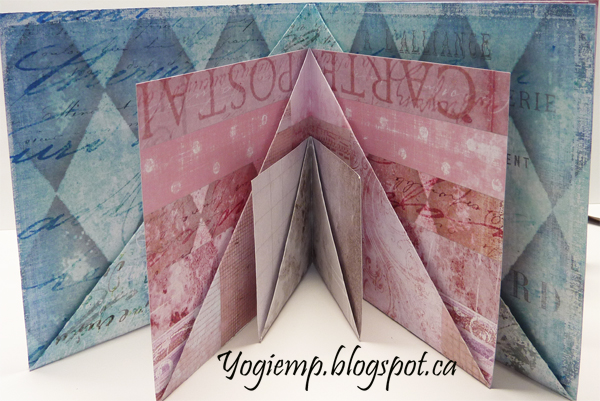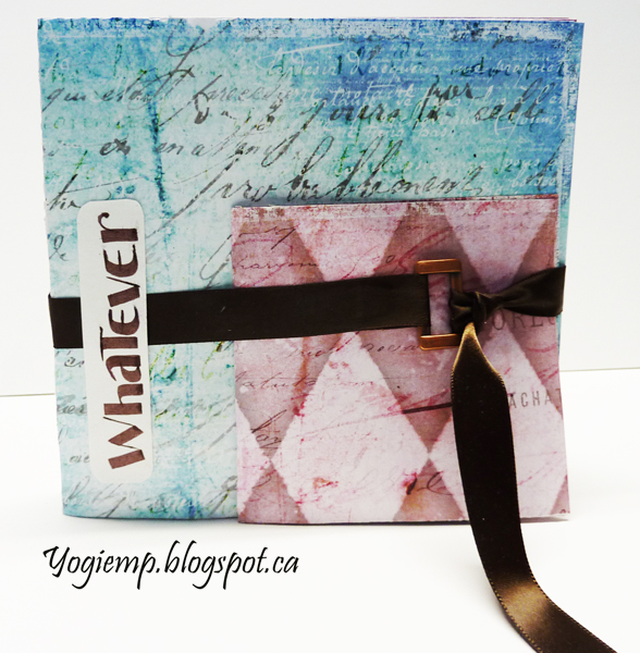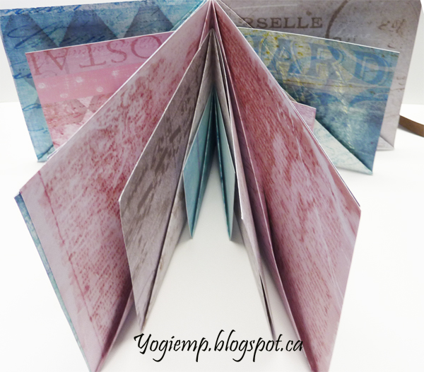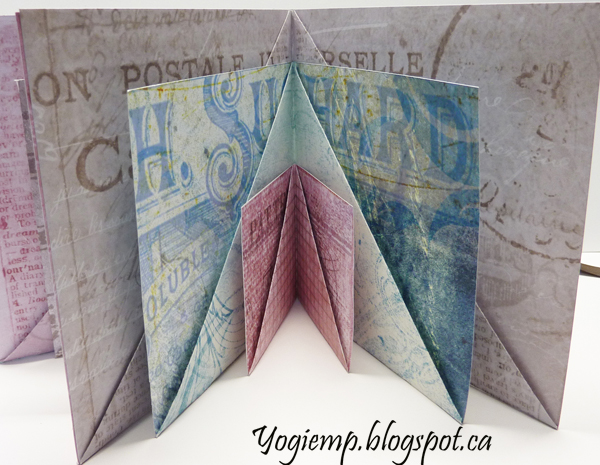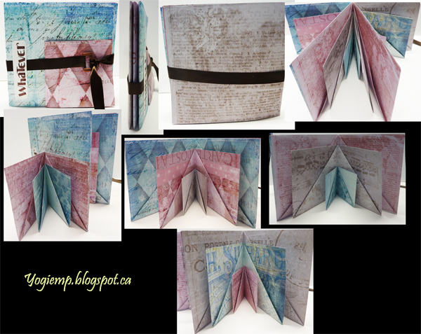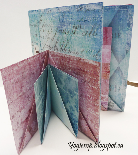 February 14, 2025 Our next challenge is to create a pocket type booklet as seen in Bound & Lettered (winter 2011 issue). It's a nice basic fold, but rather than have individual pocket pages, I decided to stack various size pockets into each other. So I pulled out some heavy weight paper from Tim Holtz from way back when... called Vintage Shabby 12 x 12 pad. Some of the papers were full sheet designs and others were 1/4 page designs - so utilized a bunch of them. Had some off cuts as well from when I 1st got the pad... |