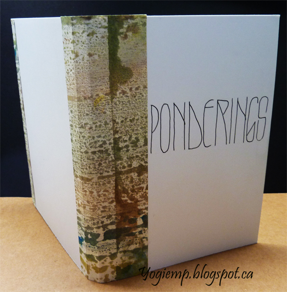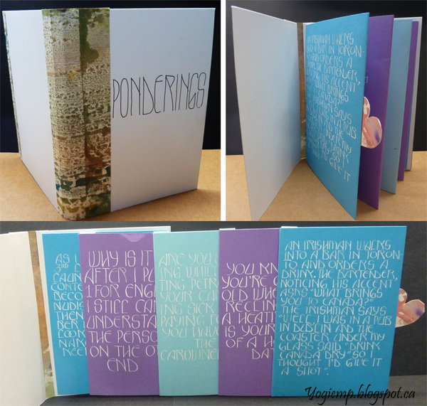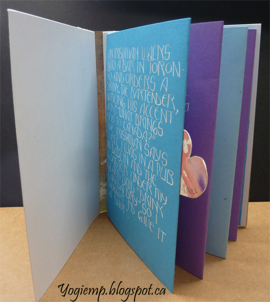 the_gifty_shop (Mar 11/24 post) Since I took a class in Art Nouveau lettering with Violet Smythe I thought I'd use that hand for this booklet. Bleed Proof white and pointed pen with a Nikko G nib. I used various colors of Recollection cardstock. The cover is made from 2 pieces of very very heavy cardstok and I added a piece of gelli print for the spine area. |