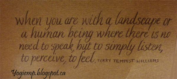 when you are with a landscape or a human being where there is no need to speak, but simply listen to perceive, to feel. Terry Tempest Williams |