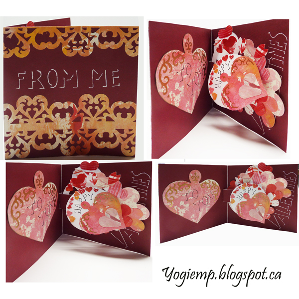 January 9, 2026 size closed: 5.5"sq The challenge for our next Art Of The Fold Group (Jan 2026) has us making a spinner card and this is my 2nd card... couldn't resist trying to make one that didn't catch when opening the card and since Valentine's is around the corner... figured hearts was appropriate. Again I used scraps for the card. Basic white card base, then I glued the red paper to the card base. I used various punches and dies and did a bit of gold painting on the Spellbinder dies using US ArtQuest Mica Color Metallic set. Link Spinner Card base Instr HERE I LOVE doing "Shadow Lettering" and did that on this card using both a ZIG Writer or a Gelly Roll white gel pen. |