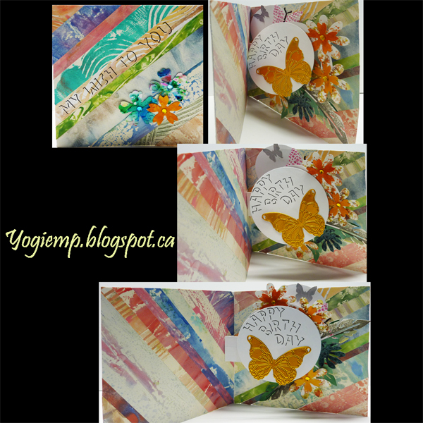 December 19, 2025 size closed: 5.5"sq The challenge for our next Art Of The Fold Group (Jan 2026) has us making a spinner card. I like the idea of it but not so much the construction. Will have to mull it over for a while... And on my theme of trying to use things up it was made completely from scraps except the base which is basic white cardstock. I raided my geli print scraps, mainly cut of ends from other projects... and glued them to the white cardbase. I like the results... Die cut circles the appropriate size. Folded the mechanism and glued to the inside, then glued the circles onto it. Link Spinner Card base Instr HERE Raided my florals/leaves and BFly stash and adhered them making sure everything rotated properly without sticking... Added rhinestone gems to flower centers. Used Shadow lettering style for the words. |