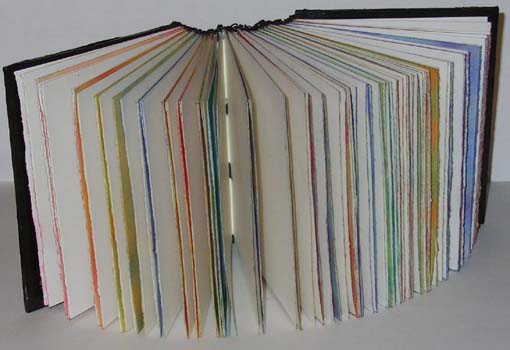 The book is made with LBS single folio cream colored end sheets from Columbia Mills. I straight cut the to and bottom edges and tore the for edge. There are 28 signatures of 2 pages each. So there are enough for every letter of the alphabet and a front and back section for misc. info. |