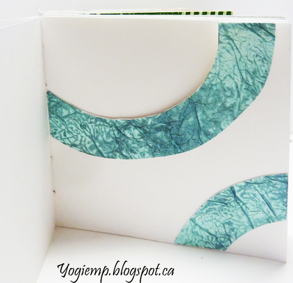 Circular pocket cut out and bordered with crinkled tissue paper cardstock. Bottom circle added as a decorative element. |