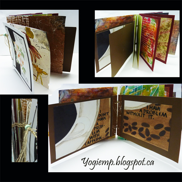 Created: August 11, 2022 I came across someone mentioning this type of binding... so looked it up and found this uTube instructional video. Well done. See it HERE It's extremely versatile if you have single page binding needs. Will also work with Signatures but you wont see as much of the stitching detail. It does need heavy cardstock or cardboard pages rather than text weight paper. The binding will probably rip the binding holes... I've been meaning to create one with odd size pages... so I raided one of my drawer stashes...I've got too many to raid. BIG GRIN. The stuff in this booklet is probably from 10 years ago... I'm so glad I finally got around to using some of it.
