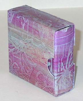 Not visible is the inside bottom portion of the box which is painted with acrylic metallic paint in a purple tone. |