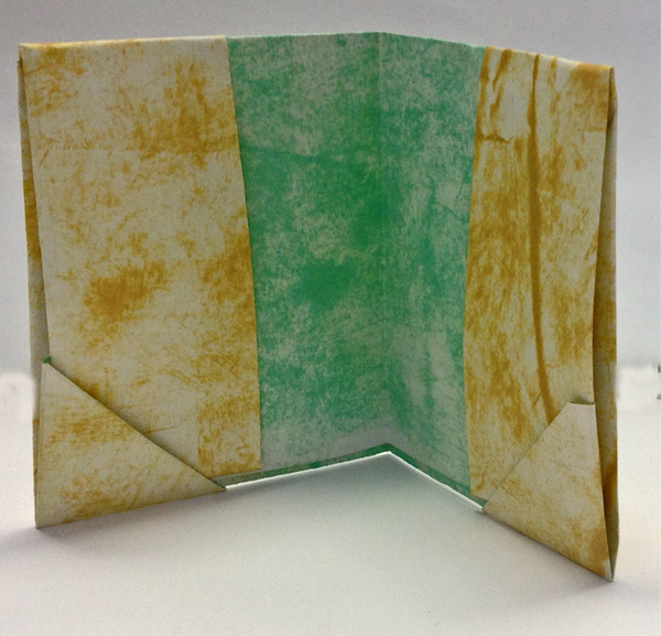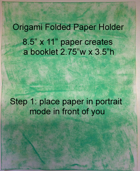 Created: February 25, 2018 At our Guild meeting today, one of the members (Christine Ahmad) taught us this origami style paper holder. Love it. This size is great for holding handouts from classes. One made from 8.5" x 11" paper makes a great gift card holder... There are a whole bunch of various pockets to slip things in. No glue or adhesive of any kind and no cutting... Click HERE to go back to the Origami Folded Paper Holder |