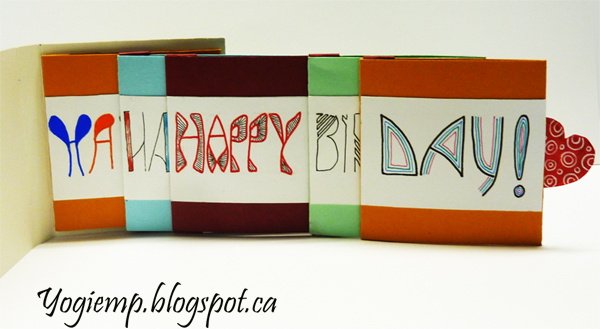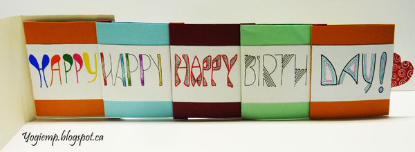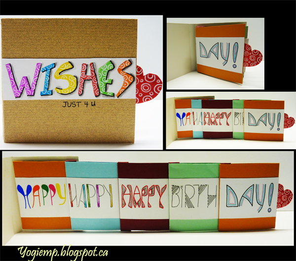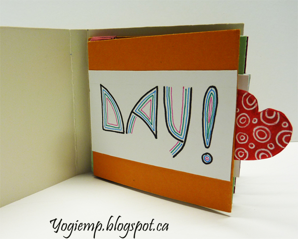 Place the next pocket on top of the first with the glued edge to the left and bottom and the left edge towards the end of the lower pocket. Glue the folded ends from the first pocket into the 2nd pocket over the glued edge. Continue with remaining pockets. They should all slide out towards the right side. To create the booklet cut one piece of cardstock (2 pocket widths plus the thickness of the stack of pockets) add a bit of lea-way for neatness... Score/fold and crease the spine edge. Adhere the back of the 1st pocket to the inside of back cover. Cut a heart or other pull tab and adhere under last pocket approximately in the center of the pocket fold.