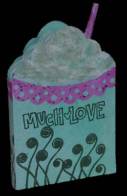 Over on Create4Fun, challenge #33 is to use a template by one of the designers. Basically it's a box, and everyone seems to be creating something, using it as a box. Those scallops immediately gave me the impression of bubbles or whipped cream or something on that idea. So then I had to decide what color I wanted, and came up with green, so thought I'd make the box into a mint cream soda, straw and all. So I printed out the template on 110# white cardstock, colored the back and front with Pan Pastels in a couple shades of green, and then cut it out. |
