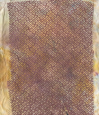 Both of the weave patterns I did on black Full Spectrum cardstock. This one was brayered on the negative side with Toffee, ran it through the Cuttlebug, then thermal embossed with Queen's Gold. |