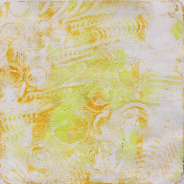 Sample 12: ALSO: using the Gelli plate after pulling the sample #9, brayer heavy body titanium white on Gelli plate and pull a 2nd print.
