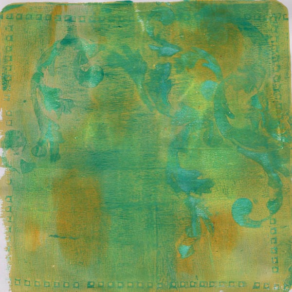 Sample 16: Used fluid acrylics for the 2nd brayering instead of the Heavy Body. It works but is not as much of a resist technique. Colors used for sample 16: Same as sample #9, 2nd brayering Folk Art Metallic Emerald Green