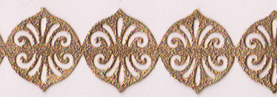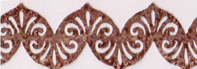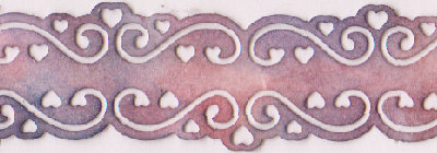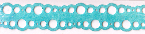 I never imagined this punch would make such a beautiful ribbon. Those small scallops on the punch became perfect circles to adhere pearls to. Then I cut another ribbon, but slightly further apart to put under, and it just set it off even more.