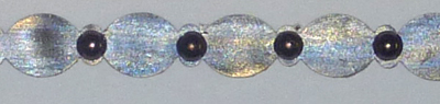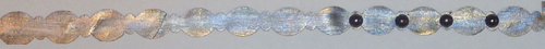 Then I got this wild idea to use Polymer clay... I've been playing with it again for the past few days and using Premo, which when baked is so flexible, it's wonderful. So I put a piece of a grey mix (it's what I was working with) through my pasta machine on the thinnest setting, baked the strip and when cooled put it through the punch. I was amazed it worked. I then colored/streaked it with Perfect Pearls and added the larger beads. Oh the possibilities are endless for adding to other polymer items or paper crafts.