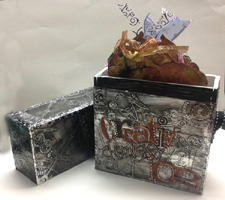 Day 1, 3, 4 & 5 - Paint Marbling, Distress - Glitter, Alcohol Faux Patina, Emboss Tarnished Metal |