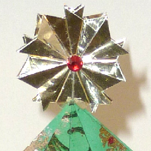 Created: December 5, 2010 I recently went to a tea bag folding demo with Sharon Reinhart over at Paper pastimes. Since then I've been having fun playing with various shapes. I've seen similar ideas for card fronts, but haven't come across one as a table center piece, so thought I'd create one. You can click HERE for the basic tea bag triangle folding instructions, or at the bottom of this web page. Love the way it turned out - and it's all made with only one basic shape. I'm also using Quietfire Design rubber stamps - the small flourish and the snowflake. Since this was more of an experiment and to use as a sample, rather than the actual center piece, I decided to use less expensive materials. The green paper is just basic colored photo copy paper which is not color fast... I only decorated one side of the tree, although when done completely it's viewable from both sides, which is one reason it makes a great center piece. |
