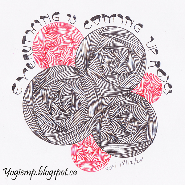 size: 6" sq On Edge Mixed Media paper drew my roses using a black and red Juice Up pen. Text with a black Juice Up pen in "Chase Zen Paris Font) altered... words: Everything is coming up roses. |