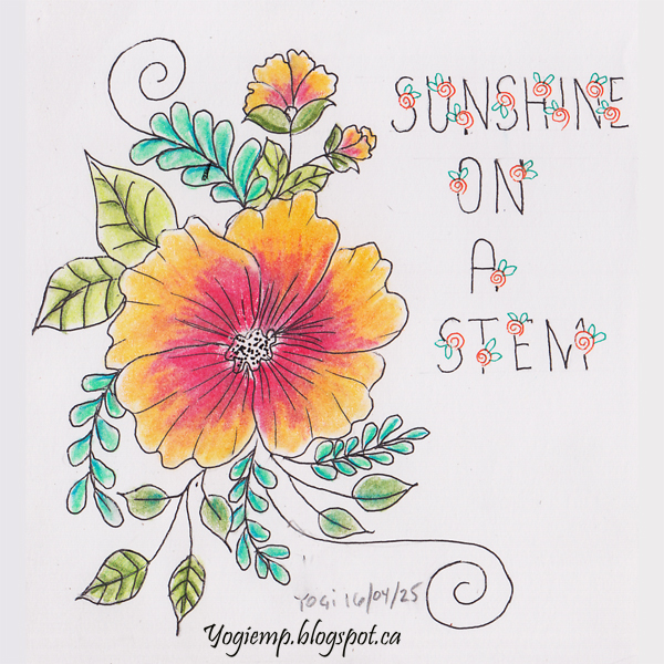 Floral - Sunshine On A Stem Created: April 17, 5Modified: size: 4.5"w x 5"h I was with the gals again yesterday and this is what I was playing with... On Canson Mixed Media paper drew out the floral design with a Juice Up pen and colored with Prisma colored pencils. Use DC Rose Font for the lettering. words: Sunshine On A Stem