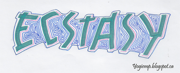 ID: Ecstasy Zig +Calligraphy marker, shadowed with a red Juice Up 0.4 pen and doodled with a blue. |