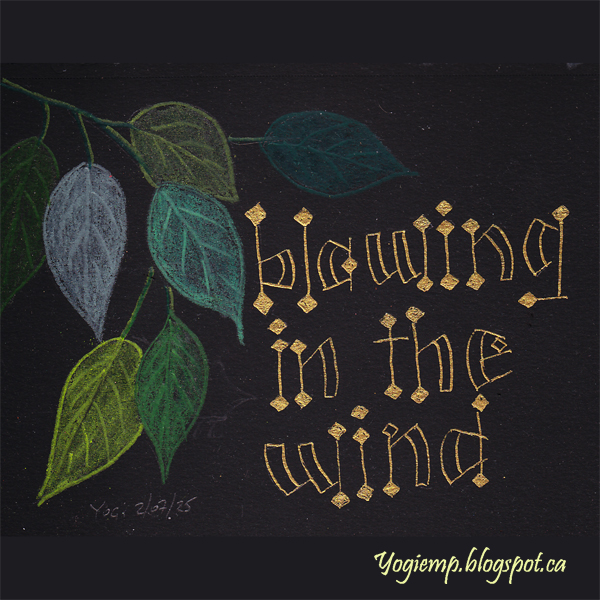 size: 6"w x 4.5"h I just bought some black drawing paper and this is the last piece I did while with the gals... On Canson XL Black Drawing Paper using metallic gel pens and Prisma colored pencils words: Blowing in the wind |
