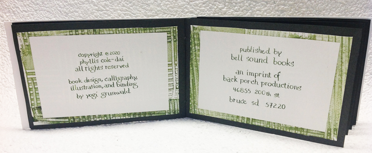 TITLE: Mini Book - YT3 - Green Arches Text Wove for the hand written text written with a pointed pen or a 2.4 Parallel pen in a Foundational style lettering using Holbien gouache (Olive Green Rich Gold & Prussian Blue). These pages adhered to a decorative layered Geli print on Text Wove using Golden's Fluid Acrylic (Iridescent Bright Gold) and Plaid Folk Art "Green Meadow". A texturing tool used to add the plaid design. This was then adhered to the Canson Ingres (green) pages. The book cover and box made from Stonehenge white heavy weight paper and embellished with the Ingres and decorative papers. The book is 6"w x 4"h x 1"thk
