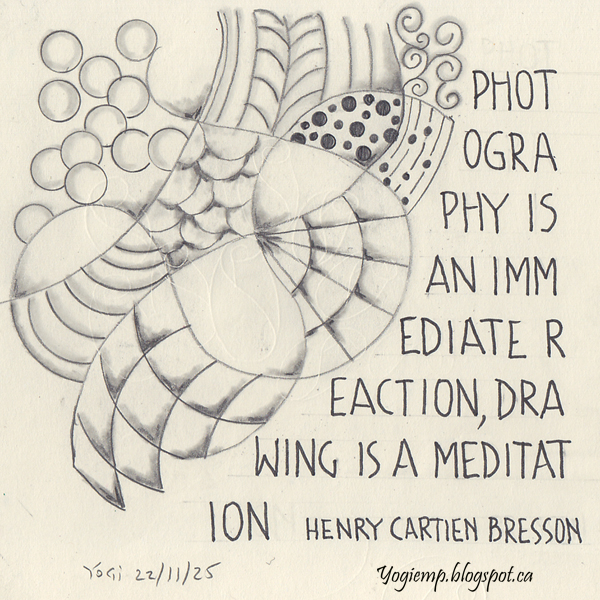 size: 5"sq On Genoa Bond Calligraphy paper drew a bunch of wavy lines crossing each other using a Blackwing 223 pencil... then started to doodle in them and adding shading. Text with a ZIG Writer words: Photography